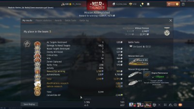 Na początek tabelki z bitwy RB WT Navy rozegranej wczoraj wspólnie z Finkiem i Danio (BR 1.7).