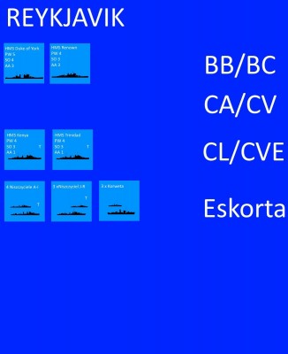 Reykjavik X Task Force 5 X Duke of York , Kenya XX Task Force 6 wychodzi jutro w morze X Renown, Trinidad, 1 DD AI, 2 DD JR X 3 DD AI, 1 DD JR XXX