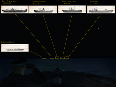 I gracz np. planuje, że strzeli tylko w duży statek 3 torpedami, starając się w nocy wejść do konwoju.