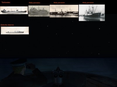 -Mamy chyba marudera. Jeden parowiec chyba wypada z konwoju. Nie słyszę eskorty za konwojem, ale przed nami mieszają się z parowcami. Kolejne bomby. Ktoś ma niezły piekarnik wokoło.