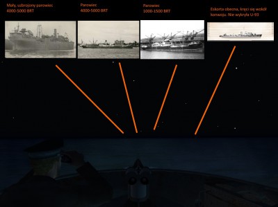 Kapitan polecił wprowadzić U-Boota w konwój. Ciemny kształt niezauważenie zbliżył się do parowców. Pierwszy wskazał na jeden z nich: