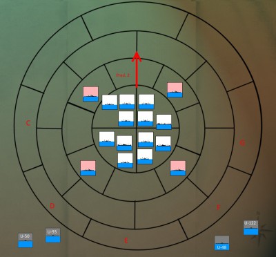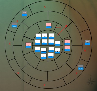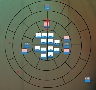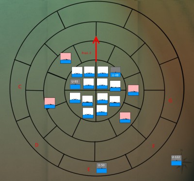 Wkrótce U-93 przeciął linię eskorty i przed nimi widać było tylko cele. (obecny zasię: Średni)
