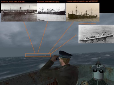 Panowie. Atakujemy z zanurzenia. Podejdziemy na średnią odległość. Strzelamy 3 torpedy do wielkiego parowca i 1 do małego.