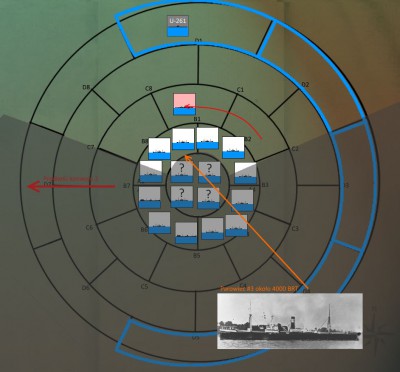 Zbliżała się północ, gdy U-261 zbliżył się do parowców na dość bliską odległość. Opłynięcie konwoju dookoła udało się prawie idealnie. Prawie.
