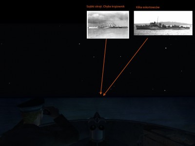 -Jest tam, Kapitanie! Jeszcze jeden!- krzyczał pierwszy oficer, przekrzykując silny wiatr, który zagłuszał jego głos. Werner wytężał wzrok, ale nic nie dostrzegał. Nagle udało mu się dostrzec w oddali lekko jaśniejszy kształt, odcinający się delikatnie od ciemności nocy. Burta jednostki i kominy. Albo to stary czterofajkowiec przechodził w pobliżu nich, kierując się na wschód, albo nieco dalej płynął krążownik. A jeżeli pierwszy oficer nie mylił się, w oddali znajdowały się jeszcze co najmniej 2 niszczyciele.