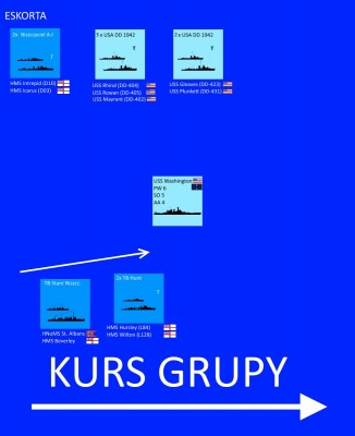 Nadać do SF. Proponując uzyć niszczycieli z Loch Ewe miałem na myśli wysłanie ich do osłony TF3 a nie nas skoro mieliśmy dużą już osłonę i proszono nas o wysłanie okrętów do TF3. Czy mamy je wysłać do grupy TF3 ?