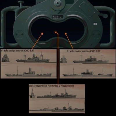 Trzy jednostki niszczycieli... zanurzenie! Cała stop. Nasłuchujemy czy za nimi nic nie płynie więcej! Alarm bojowy. Niech wszyscy będą gotowi na stanowiskach. Cichy alarm!