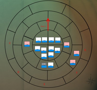 Załoga !!! Jestem z Was dumny, dzisiejszy atak przeprowadziliśmy doskonale. Każdy z Was wykazał się pełnym profesjonalizmem. U-93 nie jest już okrętem pełnym żółtodziobów, ale zaprawionym w boju weteranem. W trzech naszych atakach zatopiliśmy w sumie 7 celów o łącznym tonażu 37500 BRT i uszkodziliśmy kolejny statek. Pozostajemy jeszcze w tym obszarze i poszukamy za dnia frachtowców, które w wyniku uszkodzeń oderwały się od konwoju. Kolejnej nocy wracamy do bazy. Świetna robota.