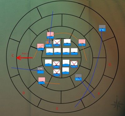 Wkrótce U-95 dotarł do kwadratu. Nawigator zaproponował wyznaczenie w nim ruchu przeszukującego, ale decyzja należała do kapitana.