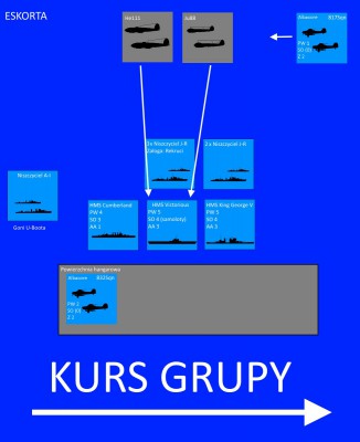 Wówczas wasza średnia prędkość spadnie o 1 (czyli do prędkości konwoju), niszczyciele będą mogły 1 dzień później wracać (2 tury, 24h). I jak wówczas U-Booty nie przeszkodzą wam, to zatankujecie. A jak przeszkodzą? To musicie natychmiast wracać.