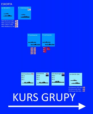 -Sir - powiedział podoficer radiooperator, wchodząc na mostek - Odebraliśmy wiadomość ze Scapa Flow. Na naszej trasie zgrupowały się U-Booty (szczegóły na mapie). Podali ich przybliżone pozycje.