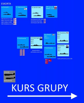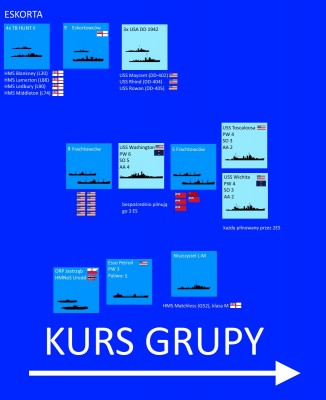 Hunty niech na razie zajmą się wypatrywanie u-botów niszczyciele w bliższej odległości do konwoju by położyć ostrzał plot gdyby zaatakowali lotnicy.
