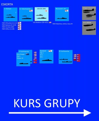 Garland, London na pewno. 3 korwety do ochrony przed U-Bootami. Rosjanie idą ze mną. HMS Matchless lub jeden z Amerykanów byłby potrzebny. Dwóch to nawet lepiej, ale wiem, że i konwój potrzebuje tych okrętów. Ostatecznie mogę dać radę nawet bez tych okrętów z samymi Rosjanami i Garlandem, ale może być ciężej.