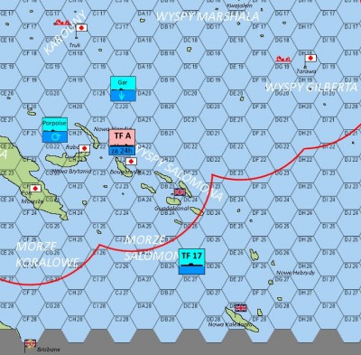 Task Force 17 kontradmirała Fletchera operuje na Morzu Salomona w połowie drogi między Guadalcanal i Nową Kaledonią.