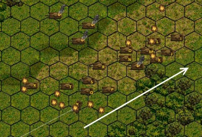 I - T-72, wycofuje się, 44 pola (2200 metrów),
