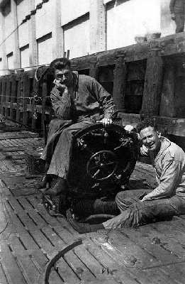 A tak na poważnie.... uważam iz nie jest to okręt z II Wojny Światowej. Wnioskuje to po ubiorze ludzi, pani na pierwszym planie ma na głowei kapelusik ktory byl modny bardziej coś kolo lat 20, tak samo dzieci na drogim planie mają ubiorki raczej nie pasujące na okres II Wojny Światowej. Warto także zwrocić uwage na melonik na glowie jakiejś pani po lewej stronie w tle....