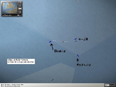 Mianowicie pod koniec jak ścigałem Lisia to Bobik walnął bomby pierwszy (Liś mówił ze go tylko drasło ciśnienie) zaraz potem Bobik zaczął nawracać w tym samym czasie ja zaatakowałem Lisia tak celnie ze jedna bomba walnęła go centralnie w śród-okręcie i ratował się blow balastem jak tylko zobaczyłem że Lisio wychodzi odpaliłem 2 torpedy do niego, a pech chciał że torpedy nie trafiły Lisia bo już opadał na dno, a zaraz tam sie musiał napatoczyć Bobik i ten piękny tekst "kur... zabiłeś mnie" (prawie jak z filmu), ja sie drę na Bobika żeby wrzucał wsteczny, Rapciu już brechta ze śmiechu, Bobik też coś tam mruczy pod nosem.