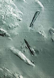 Gdyby przełamał się po uderzeniu w dno, to by części leżały bliżej siebie i byłyby raczej do siebie zwrócone...