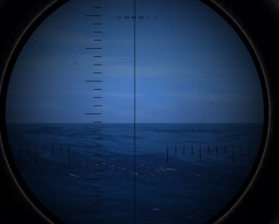 Dochodzi 11:00. Okręt prawie szoruje po dnie, a jesteśmy na głębokości peryskopowej. Na horyzoncie po podnoszeniu peryskopu widać dwie jednostki patrolowe, kieruję się między nie.