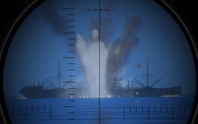 Tak bardzo przejąłem się tą misją, że zapomniałem, że oprócz zadań specjalnych mamy też prowadzić nieograniczoną wojnę podwodną. Szczęśliwie japoński, duży frachtowiec, zbliżał się z przeciwnej strony. Rozkazałem zanurzyć okręt i podszedłem na 2000 jardów. Była równo 14:00, gdy odpaliłem salwę 4 torped. Gdy torpedy zbliżały się do burt wrogiej jednostki, japsy musieli zauważyć torpedę i rozpoczęli ostry zwrot. Tylko jedna z czterech torped trafiła w dziób.