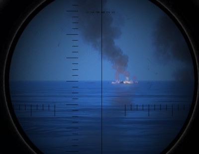 13:00. Dotarliśmy na odległość torpedy od redy. W porcie widać dużo zbiornikowców. Ledwo zrobiłem zdjęcie i zaczęło się gorąco. Jeden z niszczycieli dostrzegł peryskop. Serce mi stanęło. Rozkazałem wystrzelić wszystkie możliwe torpedy, ale wymanewrował je. Jedna trafiła w jakiś cel w porcie, ale nie wiem, czy zatonął.
