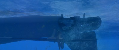 13:37. Nic tylko przeklinać. Czy nas wykrył, czy przypadkiem weszliśmy mu pod nóż... Dość, że nas wykrył i bomba trafiła bardzo blisko rufy. Kadłub jest pęknięty i woda wlewa się w bardzo szybkim tempie. Nie możemy już nic zrobić. Trzeba wynurzyć okręt.