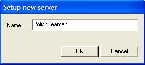 W polu Name wpisujemy np : PolishSeamen i klikamy na OK aby zatwierdzic naszą nazwe serwera jednoczesnie zamykamy Setup New Server
