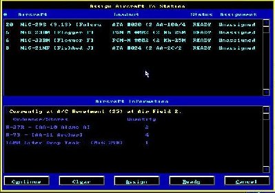 UWAGA!!! Możemy także przezbroić nasze jednostki w uzbrojenie adekwatne do charakteru danej misji ( nie użyjemy przecież migow-23 BM uzbrojonych w rakiety powietrze-ziemia/woda do misji CAP ) aby dokonać przezbrojenia jakiejkolwiek jednostki, zaznaczamy ją w oknie wyboru, po czym naciskamy przycisk READY ( zdjęcie nr. 10a ) Otrzymamy nowe okno - OKNO UZBROJENIA. Tam będziemy mieli wszelkie możliwe konfiguracje uzbrojenia dla danego typu samolotu ( zdjęcie 10b ). Gdy zdecydujemy się jak go przezbroimy naciskamy przycisk CONTINUE i wróciliśmy do okna wyboru jednostek.