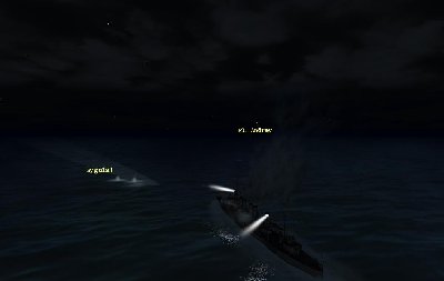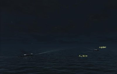 Co jak co, byłem PEWNY że idą kursem 90°. Po dotarciu na pozycję zanurzyłem się jak uczyli w akademii i spokojnie płynąłem do celu. Niestety konwój mnie prawie minął a ja wpakowałem się w bok eskorty. Następnym razem o 23-ciej kończę z podejściem.