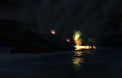 5.JPG Piekło wojny. Rozbitkowie na tle MT San Gaspar, zatopionego przez U-53.