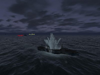 Delikatnie po cichutku podpłynąłem do konwoju a tam lotniskowce eskortowy 3 torpedy z odległości 600m i zatopiłem drania, zostałem zaatakowany przez dd uciekłem na 67 metrów, wtedy się dowiedziałem, że reszta już jest KIA, po godzinie płynięcia na cichym biegu wyszedłem na peryskopową i dobiłem uszkodzonego C3.