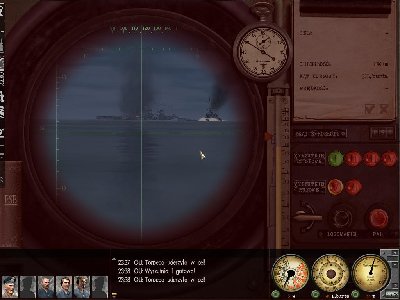 Wszedłem do konwoju jako drugi (lub trzeci). Zobaczyłem jak ktoś trafia pancernik i sam mu dołożyłem. Dostał 2 kolejne torpedy. Ale płynie dalej. No to do CL. 2 pudła. Patrzę. a pancernik prawie stoi. To dostał 3 torpedę (w sumie 4). I stanął. To posłałem mu 2 rufowe i poszedł spać. Potem "uciekałem" przed konwojem ładując torpedy i około północy (czas realny 22:25) wszedłem do konwoju. 2 torpedy do płonącego C3. Pudło i niewypał. To płynę do dużego frachtowca i wertuję książkę. Nagle zauważam DD tuż obok mnie. Na szczęście gnał do Tesa (wogóle miałem szczęście. Najpierw Skubi, Potem Marco, a na koniec Tes odciągali ode mnie D. Dzięki!). Znów wracam do czytania, spoglądam na ekran... a tu Duży fracht na 90 w odległości około kilometra. Posłałem mu salwę 3 torped. Wszystkie weszły i zatonął. Potem jeszcze atakowałem T2 i trafiłem go 2 razy (choć dostałem 1 meldunek, to może tes też trafił), ale skubany odpłynął z mocnym przechyłem. I na peryskopowej odpłynąłem.