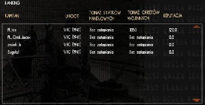 Patrol niestety nie był ciekawy, zaczęliśmy w wynurzeniu minąłem Tesa, machając mu działem . Zanurzyłem się, a potem zobaczyłem niszczyciele. Pędziły przed nami, przeszły, a potem zaczęły obrzucać wszystkich bombami. Po 20 minutach patrolu byłem na 200m uciekając przed DD-kami. Tesa i Zyźka zatopili, ja zaś oddaliłem się bez szwanku. Syguła, jako jedyny wystrzelił do grupy bojowej, ale spudłował. Po 45 min nie było już co robić.