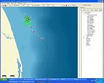 Teraz mamy połączony konwój, z tym, że mocno rozrzucony po mapie (bo statki leżą tam, gdzie zostały "ciepnięte". Pora na zaaranżowanie konwoju. Po pierwsze przesuń dowódcę w miejsce, w którym chcesz, aby konwój zaczynał grę. Ja na przykład przesunąłem statek na przybrzeżne wody Florydy.