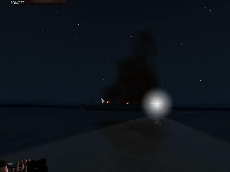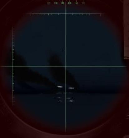 Jasna noc, okręt na powierzchni, zwrot o 180st. w kierunku świateł okrętu. Mijam oświetlonego neutrala i atakuję z działa przybrzeżny tankowiec. Odgryza się z plotki, ale tonie. Odpływam bo zbliżają się eskortowce. Zauważam kolejny dym i płynę w jego kierunku - to samotny passanger/cargo. Zauważa mnie przy podejściu i oświetla. Odpalam torpedę - w celu, lecz statek nie tonie. Kolejna - dalej nie tonie, schodzi dopiero po trzeciej, ale zaalarmowane DDki już się zbliżają - 4 sztuki . Ustawiam się rufą do nich i staram ujść na peryskopowej z miejsca ataku. Co jakiś czas pingi muskają kadłub, ale na szczęście dla mnie ktoś inny wynurzył się i odciągnął je ode mnie.