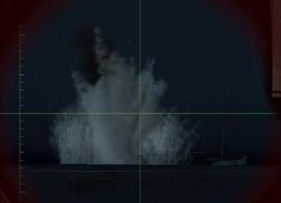 Ruszam w pościg za kolejnym dymem , widzę tylko rufę i rozpoczynam ostrzał, ogień pojawia się na nadbudówka, jeden komin zdemolowany, ale ...... czerwony krzyż, przerwać ogień .