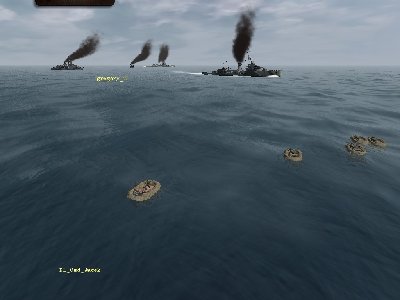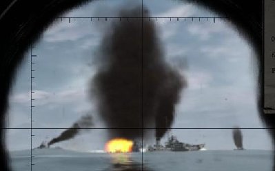 Pogoda dopisała i fale były małe. Zatrzymałem się mając niszczyciele za rufą. Tankowiec płynął wolno ok 5w i był w dobrej pozycji (jak na zdjęciu). Trochę przeszkadzał fakt, że miałem go na namiarze prawie 60, więc błąd żyroskopu mógł być duży. Puściłem 2 torpedy 1,5 pod kil, jedna w środek, druga w dziób. Jak mi potem powiedział Gregory, to pierwsza trafiła idealnie, a druga przeszła przed dziobem.