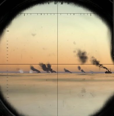 Cele miałem i szansę trafienia w zasadzie do ostatniej chwili. Miałem dobrą pozycję do ataku, choć trochę odległą (tego tankowca na początku ustrzeliłem z jakichś 3 km). Więc do końcówki konwoju zdołałem się zbliżyć. Przedostatnia torpeda odbiła się od tego Troopa którego potem ubiłeś, ostatnią chciałem posłać do odległego co prawda, ale wciąż możliwego do ubicia Cargo Steamera.