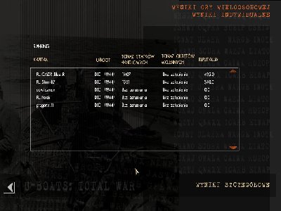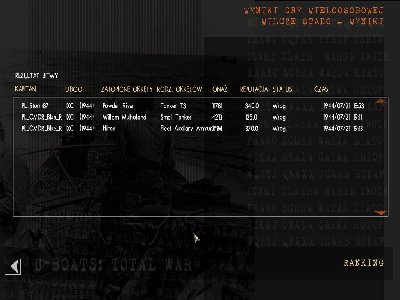 Cóż. Fala 20... Ciężko. Pierwsze 30 minut pod znakiem mijania DD i walki, aby peryskop nie wystawał. Fox6 już się od dawna się ściga (wystawiło się chrapy, się cierpi). Po 45 minutach wreszcie widzę cel. T3. Musiałem pozbyć się DD w pobliżu i posłałem akustyka, którym prawie sam się zabiłem, gdy DD przepłynął nade mną. Ale w końcu dostał. Z tym, że odpłynął płonąc. Salwa 4 torped... Ale cóż. Ustawiłem torpedy magnetyczne na +1,3m (mój błąd) i +1,7m... Pierwsze się odbiły, a drugie... przepłynęły pod celem. Obracam się, aby go zaatakować. Łup. Ktoś (Storm87) go trafił i zabił. Przeładunek torped, co chwilę przerywany, gdy DD jest w pobliżu. Z mgły wyłania się statek zidentyfikowany jako Empire Celt. Wystrzeliłem FAT do małego tankowca na 1,5km (magnetyk)... Obracam się, aby walnąć z rufy do EC... PING! DD się wyłonił zza EC. Odpaliłem torpedę ustaloną na 300m (magnetyk).. DD gna na mnie, minie mnie przed dziobem. CAŁA WSTECZ!!... ŁUP! Kapitanie, mamy uszkodzenia. Boczną mnie dorwał. Zniszczone WSZYSTKIE SILNIKI! I mocny przeciek. ŁUP. EC dostał... Walka, aby zatrzymać okręt przed opadaniem i naprawić przecieki. ŁUP! O? Coś jeszcze trafiłem? Pewnie tego małego... Udaje mi się ustabilizować okręt na 130m. Jeszcze łatają przecieki... K... Fajnie. EC nie zatonął. Tylko mały... Trudno. Lepszy rydz, niż nic... Teraz tylko przeżyć.... Nagle komunikat "Jednostka zniszczona". K. TAK! Drugi... eeee... amunicyjny? Może... w każdym razie: DRUGI ZATOPIONY!... Uszkodzenia załatane, okręt w miarę ustabilizowany. 40 minut do końca patrolu... Na szczęście DD mnie zgubił. Jeszcze tylko 1 raz rzucał bomby, ale nie trafił... Potem odpłynął... Czekałem do końca na głębinie. Żałuję, ze nie wynurzyłem się na ostatnie 3 minuty. Miałem 2 torpedy, a w zasięgu był unieruchomiony Victory... Ale skąd miałem o tym wiedzieć?