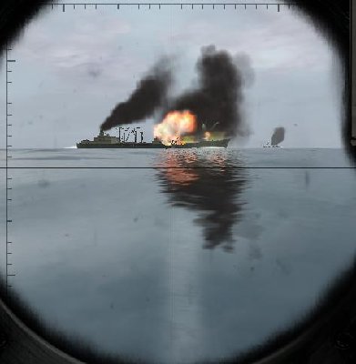 Jakoś nie spieszno mi było na powierzchnię. I jak widzę w pierwszym serwerze, to chyba mnie ocaliło. Markow zginął dość szybko. 40 minuta patrolu. Ja wszedłem do konwoju, po cichu omijając eskortę, odpalam torpedy do małego mercha... Pudło? Trudno. Cel troop... Potem stary liniowiec... Atakuję troopa... Dostał torpedę. Szykuję dobitkę. Wywaliło Pablo... Co robić dalej? Zostałem sam... "Płyń" dostałem poradę. Troop dobity. Cel stary.... zaraz.... czy ja widzę liniowiec? Okej. Oczekując na cel dobiłem T3 za pomocą 1 torpedy T3. Potem 2xT1 posłało na dno liniowiec. A że mi jeszcze 2 torpedy T1 zostały, to następny w linii troop dostał jedną i wyleciał w powietrze. Już poza konwojem... Ale jeszcze Chatman w zasięgu... I LST pod dzikim kątem... LST wymanewrowało T1. No to gnam do Chatmana... Nieszczęśliwym trafem DD się przypałętał. Wystrzeliłem 2 torpedy T3 na pałę i zanurzenie... 1 trafiła... Chatman zatonął. Clemson, który mnie wykrył obrzucił mnie bombami. Trochę mnie wytrzęsło. Schodzę na 150m. Cisza na okręcie. Jeszcze przez około 5-10 minut DD rzucał bomby wokoło, ale odpłynął. Jako, że byłem sam, gra w tło, a ja piszę raport. Właśnie gra się skończyła... Teraz tylko poprawić, co się da i gotowe...