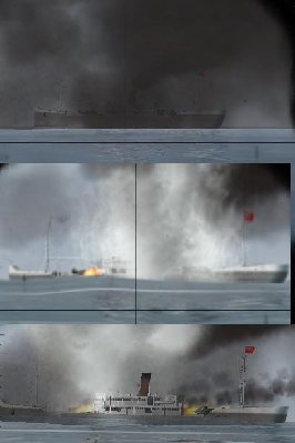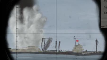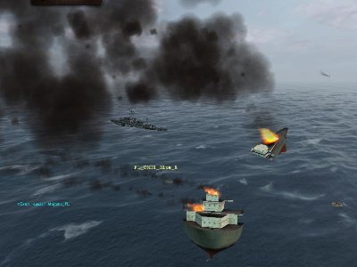 Powoli oddalam się na głębsze wody obserwując pobojowisko za rufą. Wśród kłębów dymu zauważam stojący transportowiec - celna torpeda niszczy jego kadłub i statek tonie. Pojawiają się niszczyciele, które obrzucają miejsce ataku bombami. Ja na szczęście jestem już daleko