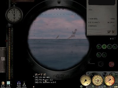 Zanim wyszedłem na peryskopowa było słychać nastepne serie bomb. Przez peryskop dojrzalem jakies 2-3 km dalej 3 niszczyciele rzucajace bomby, krążący samolot i statek który akurat dostał torpede i mocno zadymił horyzont. stwierdzilem że nie moge wplynac w to piekiełko bo to zbyt ryzykowne i wkonalem zwrot w lewo aby wystrzelic torped rufowe i odejsc potem pólkolem od polnocy.