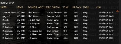 Topiąc kolejnego, zaczaił się na mnie Hunt, lecz ominąwszy jego atak udało mi się go zgubić. Za to Gregory miał mniej szczęścia dopadła go eskorta i zatopiła. Statki odpływały a ja bezpiecznie się oddalałem słuchając na hydro, jak bomby lecą na innego uboota oraz przyglądając się spławikowi, który pozostał na polu bitwy.