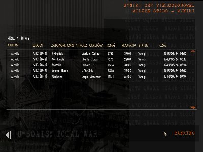 Patrol okazał się być bardzo fajny i nie wydawał mi się jakoś szaleńczo trudny rybki podane jak na tacy wystarczyło wpłynąć do konwoju i jazda oczywiście uważając na eskortę lecz na samym początku wdałem się w nie potrzebną walkę z Polskim niszczycielem .Podpuściłem go za blisko licząc na strzał ostatniej szansy gdyż była to już torpeda z wyrzutni Nr. 5 która również minęła cel ( poprawki robiłem szybko i ręcznie lecz w ferworze walki zapomniałem wyczyścić wcześniejsze dane co miało wpływ na moją celność ehh Ci młodzi dowódcy Ubootów) ALARM !!! unik w lewo potem w prawo Buumm to jeszcze nie dla mnie pomyślałem schodziłem co raz to głębiej lecz kolejny zrzut albo pozostałość tego pierwszego spotkała się z moim okrętem ....