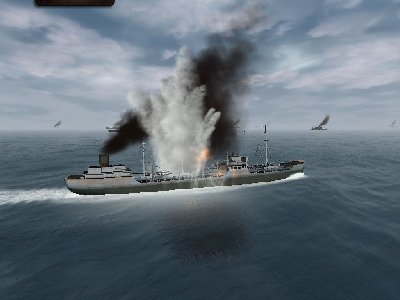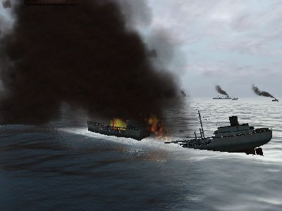 Nie dłużej niż po około 10 do 15 minut OW podaje komunikat o zauważeniu wrogich jednostek więc nie czekając natychmiast zmykam na peryskopową,cicha prędkość podaję kurs i biorę się za nastawy dla torped. Zbliżają się nasze cele tłuste ociężałe frachty,ktoś z naszych już rozpoczął atak,zakląłem pod nosem nie byłem jeszcze na dobrej pozycji,ale nie było już na co czekać ....cel Empire-type Freighter z rufowej ognia odpalam i po chwili słyszę wybuch .....szlak by..... myślę pewnie trefna torpeda ,nic trudno posyłam kolejne torpedy w Troopa i Small Transporta obie trafiają załoga szaleje jednak obie jednostki nie toną i wymagają dobicia.