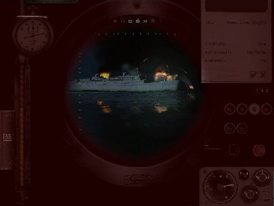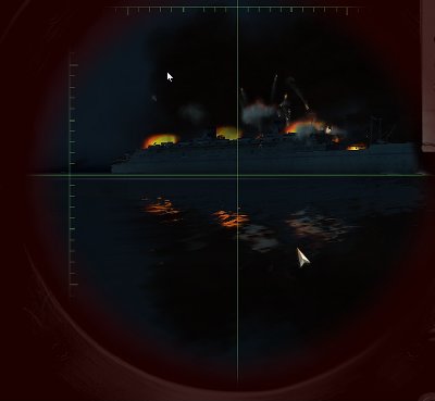 Niby było ciemno i nie ciemno . Jakoś tak dziwnie trochę . Z daleka na horyzoncie masa dymów ,ale na tle nie mogłem rozpoznać co to jest . Dopiero poniżej 1km wreszcie można było rozpoznać poszczególne sylwetki . W pierwszej chwili trochę się zakręciłem ,bo myślałem ,że konwój płynie w innym kierunku , ale jakoś tak się szczęśliwie złożyło ,że wpłynął z lewej burty prosto na mnie . I mogłem strzelać jednocześnie z wszystkich wyrzutni bez konieczności obracania całego okrętu .