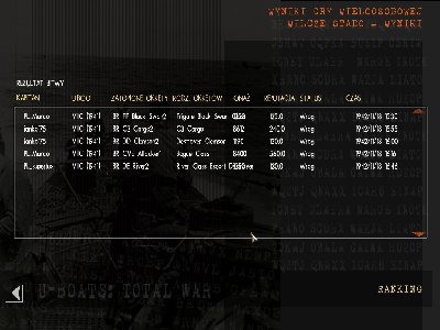 Dobrze pamiętałem, że już płynąłem ten patrol. Wtedy poległem. Tym razem podszedłem zbyt blisko niszczycieli, jeden spostrzegł mój peryskop no i się zaczęło. Pingi i bombki prawie do końca. Cisnęli mnie strasznie. Jeden moment bardzo krytyczny, ale mechanicy na posterunku. A myślałem, że poprzedni patrol był trudny. Tym razem zniszczony: przedni pokład, działo pokładowe, antena radiowa i działko plot. Cały ten czas przesiedziałem na blisko 200 metrach. Pod koniec zacząłem ostożnie się wynurzać. Na peryskopowej ogląd sytuacji; dwa DD-eki w pobliżu, kilka statków z konwoju, najbliżej tankowiec T2. Jednego niszczyciela udaje się zdjąć. Strzały do T2, niecelne. Podpływa Clemson. Zainteresował się zatopieniem kolegi. Czas upływa nieubłaganie. Jedna rybka zdąży się załadować. Może uda się go dopaść. Czuję na plecach jego oddech. O dziwo, nie wykrył mnie. Jednak nie. Zmiana decyzji i celu, wybór - tankowiec. Nie ma czasu na zebranie danych; strzał z ręki. Niecelny. Uff. Koniec patrolu.