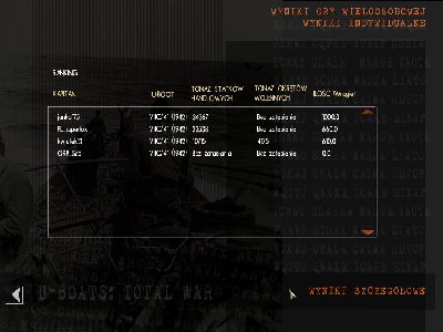 Torpedy rzeczywiście były jakieś chińskie. :) Aż się z wszystkich wystrzelałem, jak nigdy. Fajna misja; w miarę upływu czasu zacząłem pływać trochę bezczelniej ściągając na siebie uwagę eskorty (to przez te pudła). Na Brooklyn-a się nie doczekaliśmy, ale i tak było do czego tłuc. Niszczyciele były bardzo pracowite, jednak kiedy byłem na peryskopowej coś nie bardzo im szło z celnością. Także integrałkę zachowałem całą. Co ciekawe, kiedy na ostatnie 5 min. postanowiłem się zanurzyć eskorcie niemal udało się mnie sponiewierać. :) AI im się poprawił czy co ? :|| Również dzięki za grę. Gratulacje Janek. :piwko: