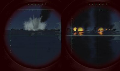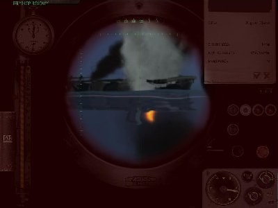 Zostały mi 3 torpedy... I tylko lotniskowiec co się zbliża... Prawie wpadam na czyjś peryskop (potem okazało się, że to Sęp i jeszcze się spotkamy)... Ktoś uszkadza lotniskowiec... To celuję w mały statek... Będzie ciężko... Czekam na pozycji... Kurcze już mam 2 torpedy, a od trafienia lotniskowca upłynęła masa czasu (jeszcze jak torped nie miałem). To dobiłem go, zapewniając, że się podzielę... I nagle zauważam peryskop... Pi razy firana na kursie torpedy! Na szczęście nie trafiłem swojego.