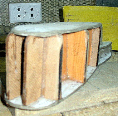 wręgi kopyta wykonałem z paneli ściennych, podłużnice z paneli podłogowych, wypełnienie kopyta styropian, później gips, na koniec szpachel samochodowy.